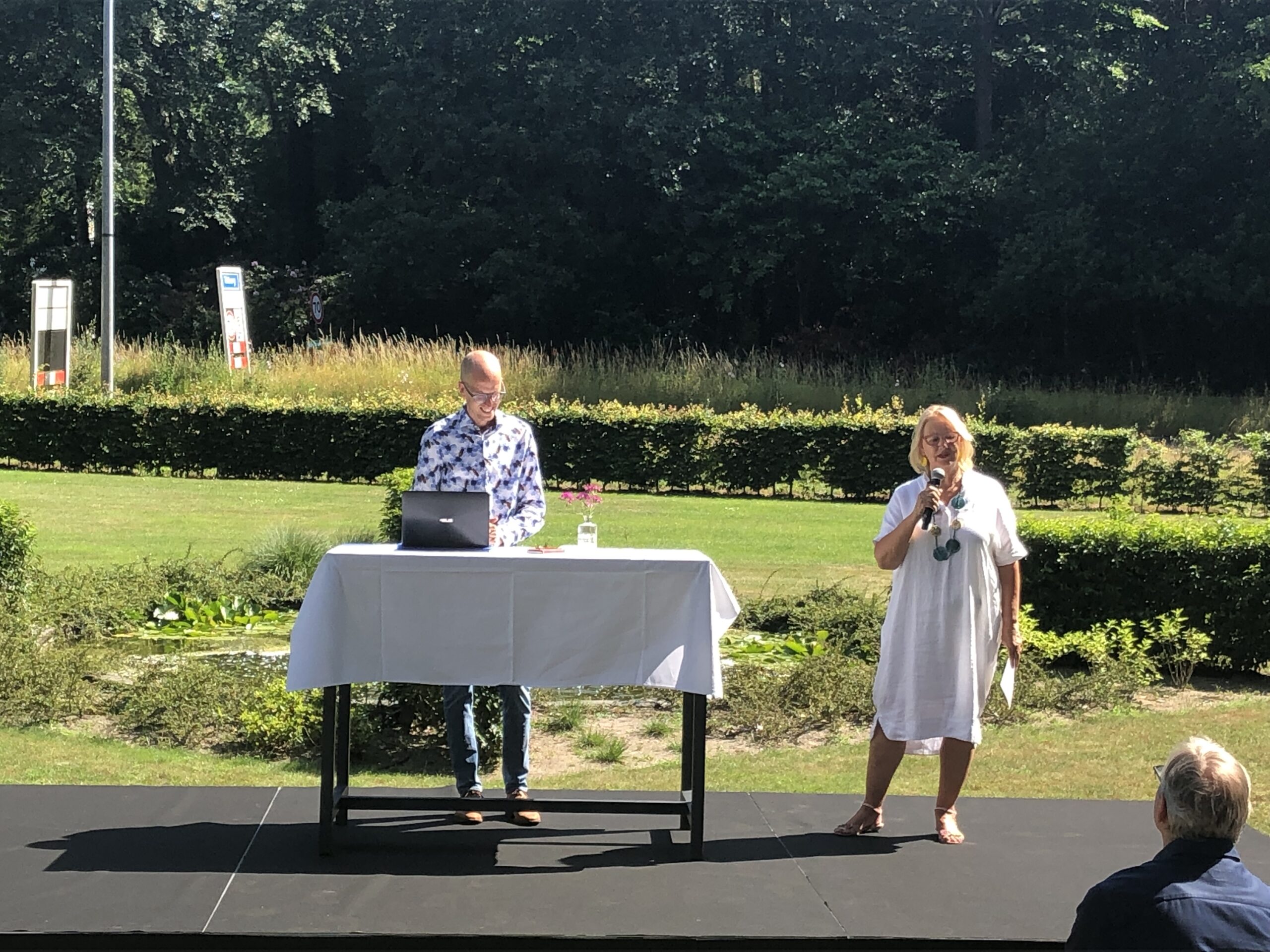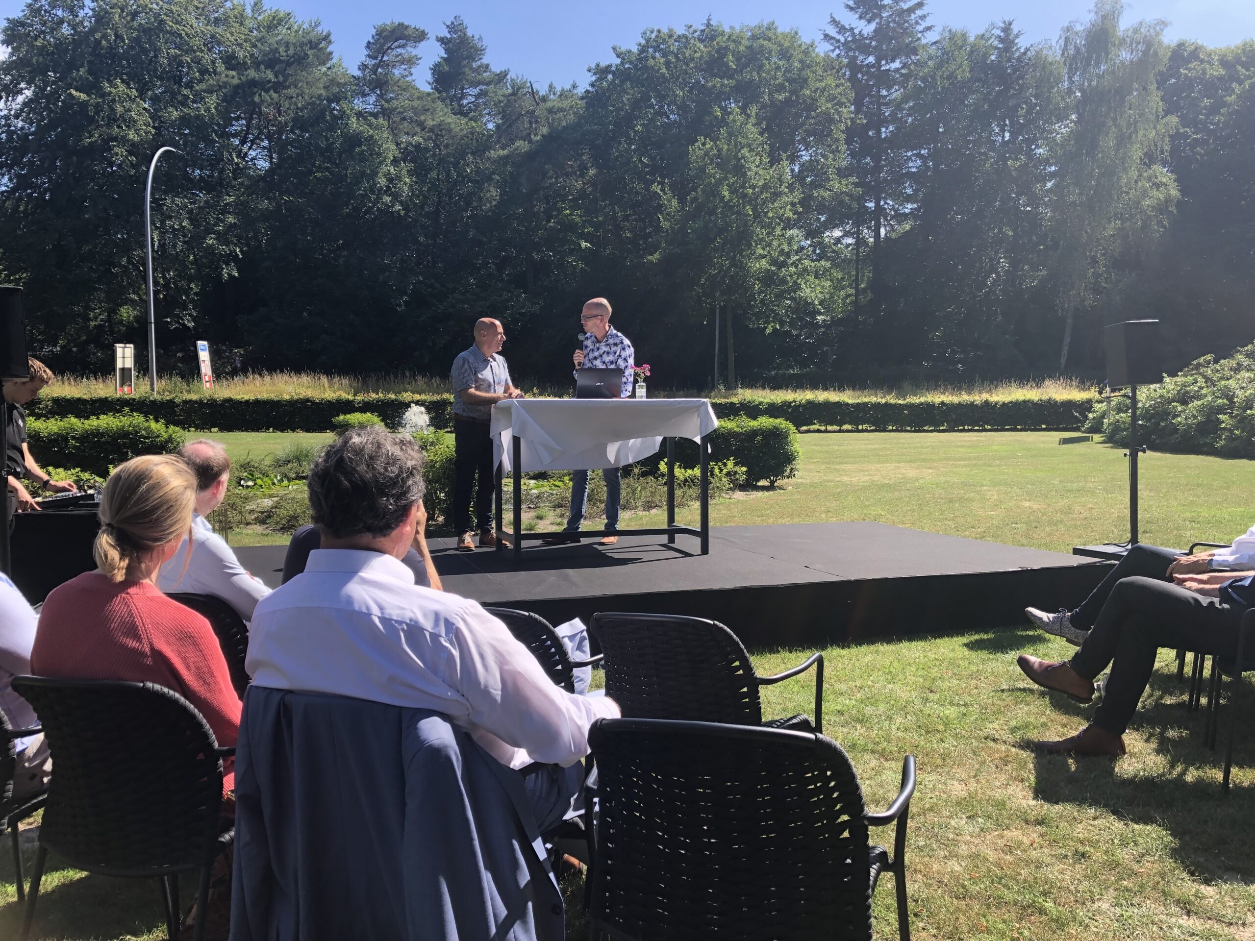 Ton nam in de brandende zon het publiek mee in zijn verhaal over de arbeidsmarkt en aan welke tien knoppen je als ondernemer kan draaien om het personeelstekort op te lossen. Via mentimeter werd het publiek betrokken bij de keuzes die gemaakt kunnen worden om personeel aan te trekken of het personeelstekort op een alternatieve manier in te vullen. Daarbij gaf Ton wel aan dat vergrijzing en daling van het aantal jongeren ervoor zorgen dat het aanbod de komende jaren krap zal blijven, gelet op de vraag. Geen reden om bij de pakken neer te gaan zitten, maar we moeten dus slim omgaan met het beperkte aanbod.