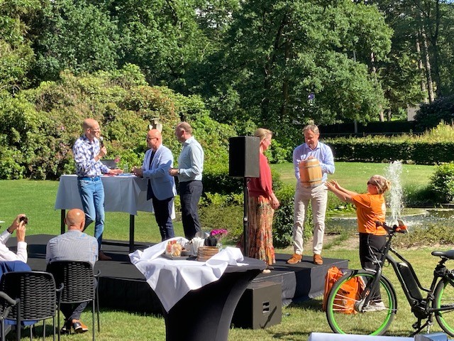 Vervolgens was natuurlijk het moment daar waar de Haringparty om bekend staat: de uitreiking van het vaatje haring. Op een ludieke wijze, middels een fietskoerier, werd het haringvaatje aan de wethouders Bas van der Pol (gemeente Tilburg), Ronald Bakker (gemeente Waalwijk), Natasja Leijser (voorzitter VNO-NCW Midden-Brabant) en Marc Heuvelmans (voorzitter BORT) overhandigd. Toen het formele gedeelte klaar was, werd haring aan de gasten geserveerd en begon het netwerkdeel onder het genot van een hapje en een drankje.
