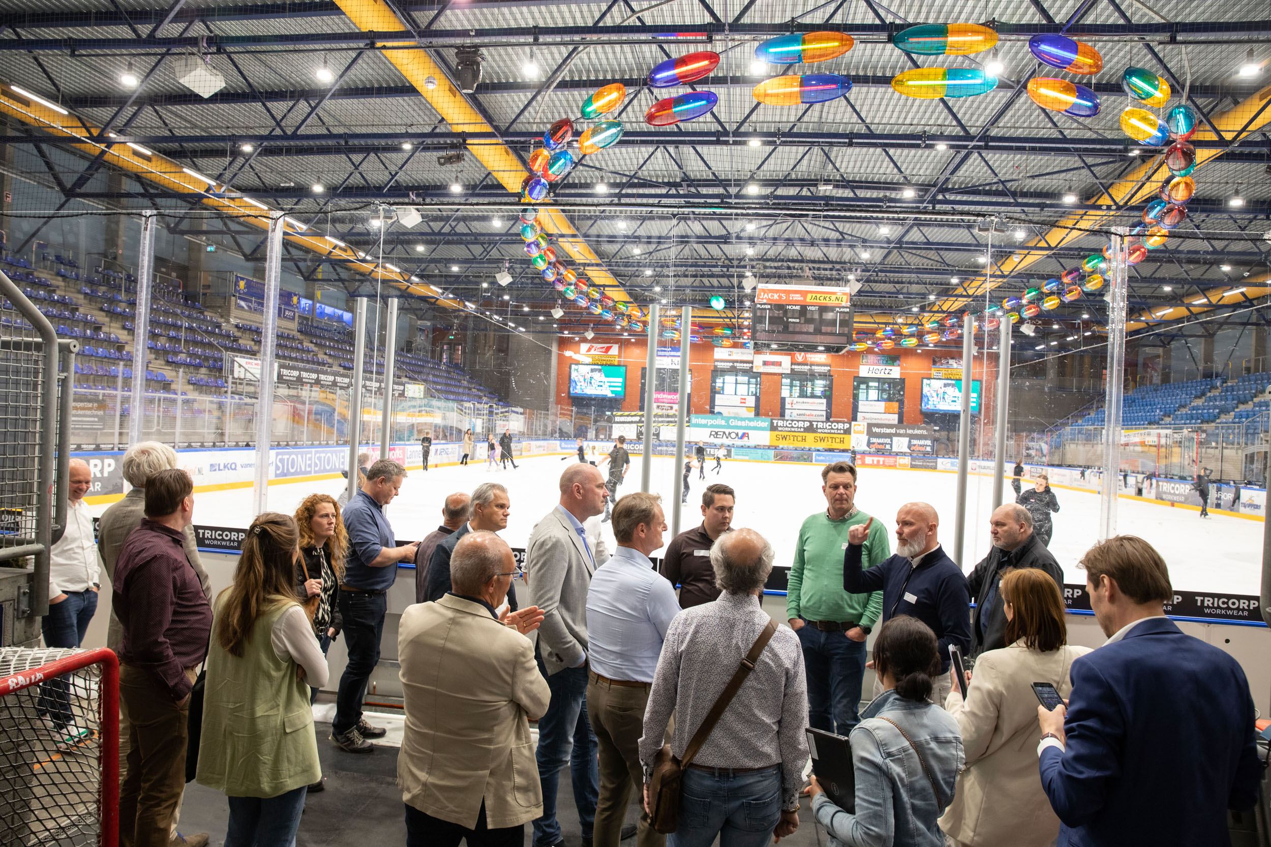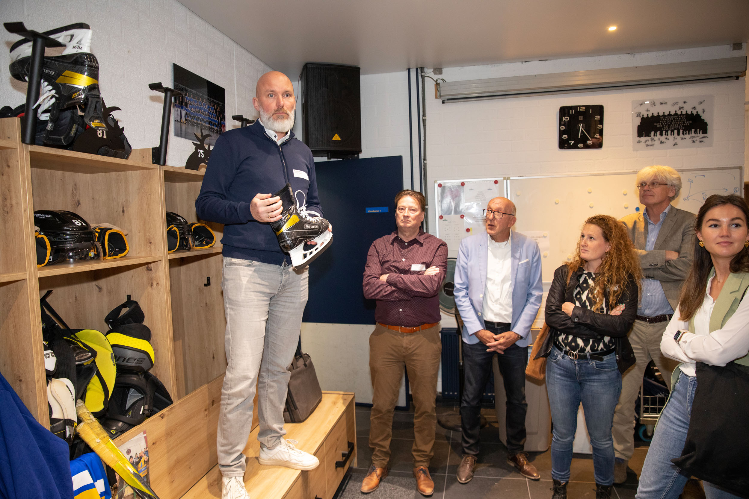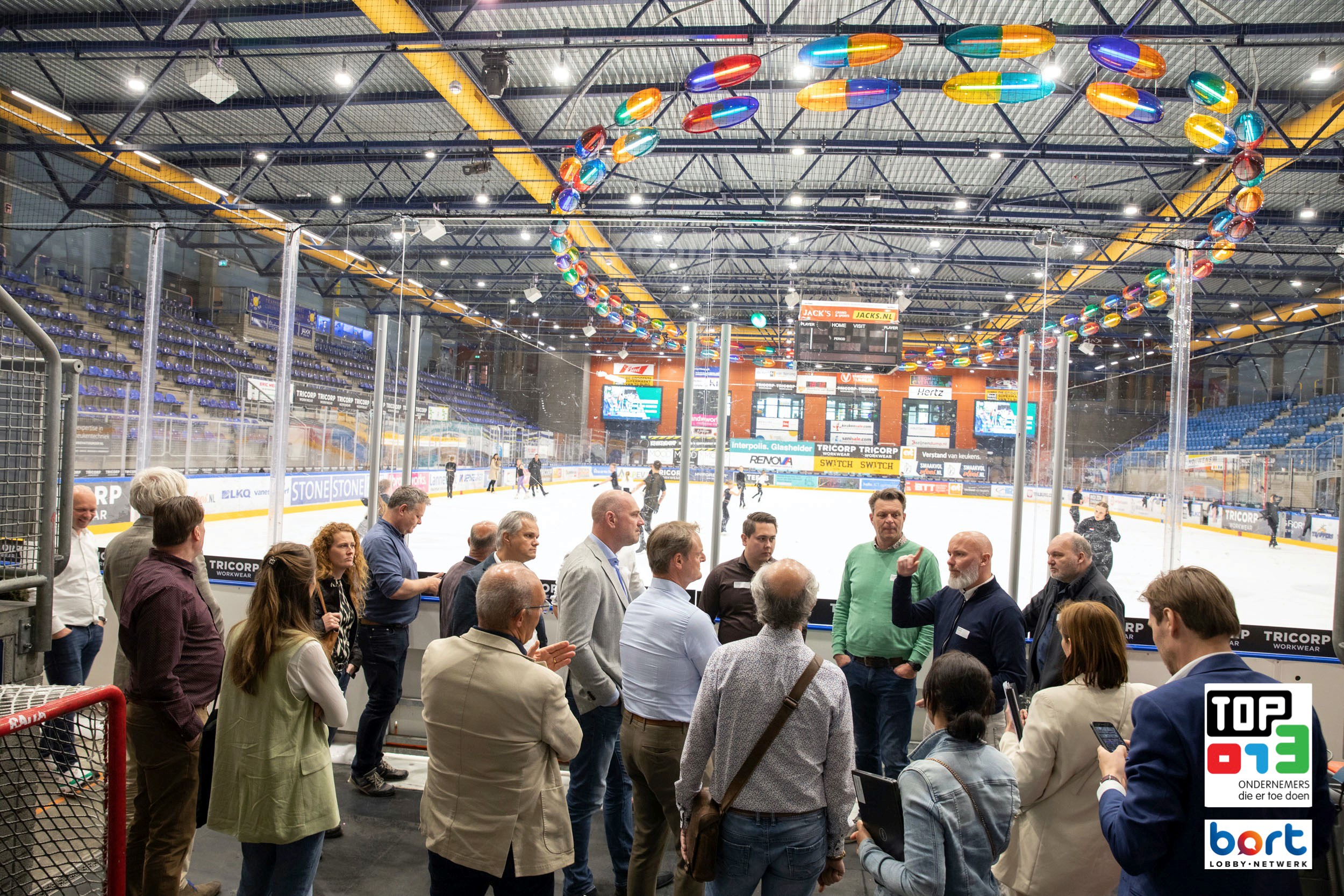 De laatste stop was Tilburg Trappers op Stappegoor. Tilburgs trots op ijshockeygebied, een ploeg die al jaren hoge ogen gooit en door successen in het binnenland nu in de Oberliga bij onze Oosterburen speelt. We werden door Ruud van Baast meengenomen in het verhaal van de Trappers en hebben de ijsbaan gezien en de kleedkamer van het eerste team betreden. Daarna was het tijd voor netwerken met naar keuze zelfs een eigen Trappers biertje! We kijken kortom weer terug op een zeer geslaagde Tilburg Tour met inspirerende bedrijven.