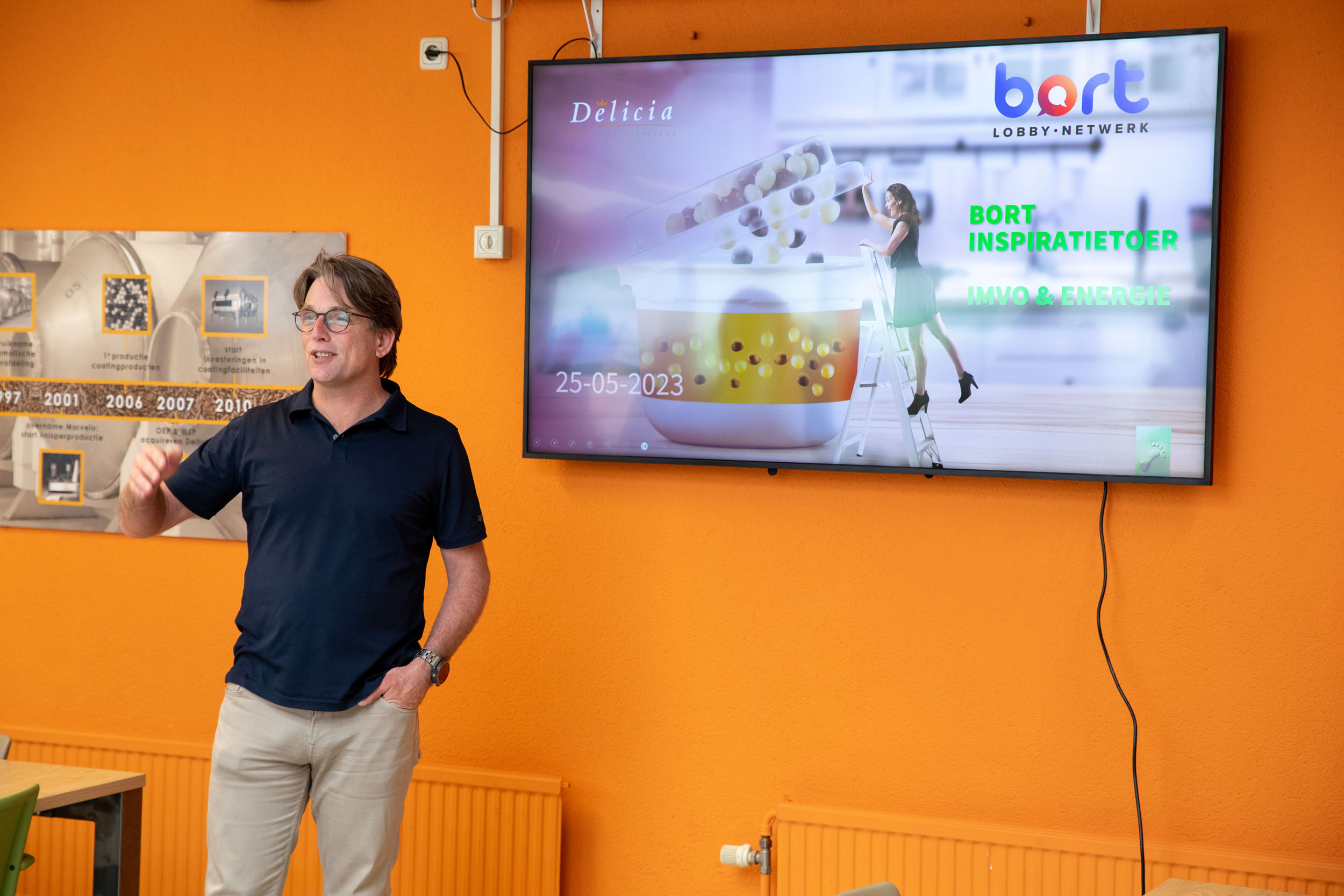 Onze rit vervolgden we naar Delicia, de producent van hagelslag – inderdaad: een puur Nederlands product – en andere chocoladeproducten. Sinds de oorlog zit dit bedrijf al in Tilburg. Wist je dat dit is uitgegroeid tot de grootste hagelslagfabriek in West-Europa is? Directielid Bernd Postma gaf aan met zijn bedrijf verantwoordelijk te zijn voor alle privatelabel hagelslag in Nederland en buurlanden. Daarnaast coaten ze onder andere ook de chocolade voor chocolade pepernoten. Ook aansprekend zijn het energiebeleid – nul op de meter is binnen bereik – en het personeelsbeleid, dat volop ruimte biedt voor persoonlijke ontwikkeling
